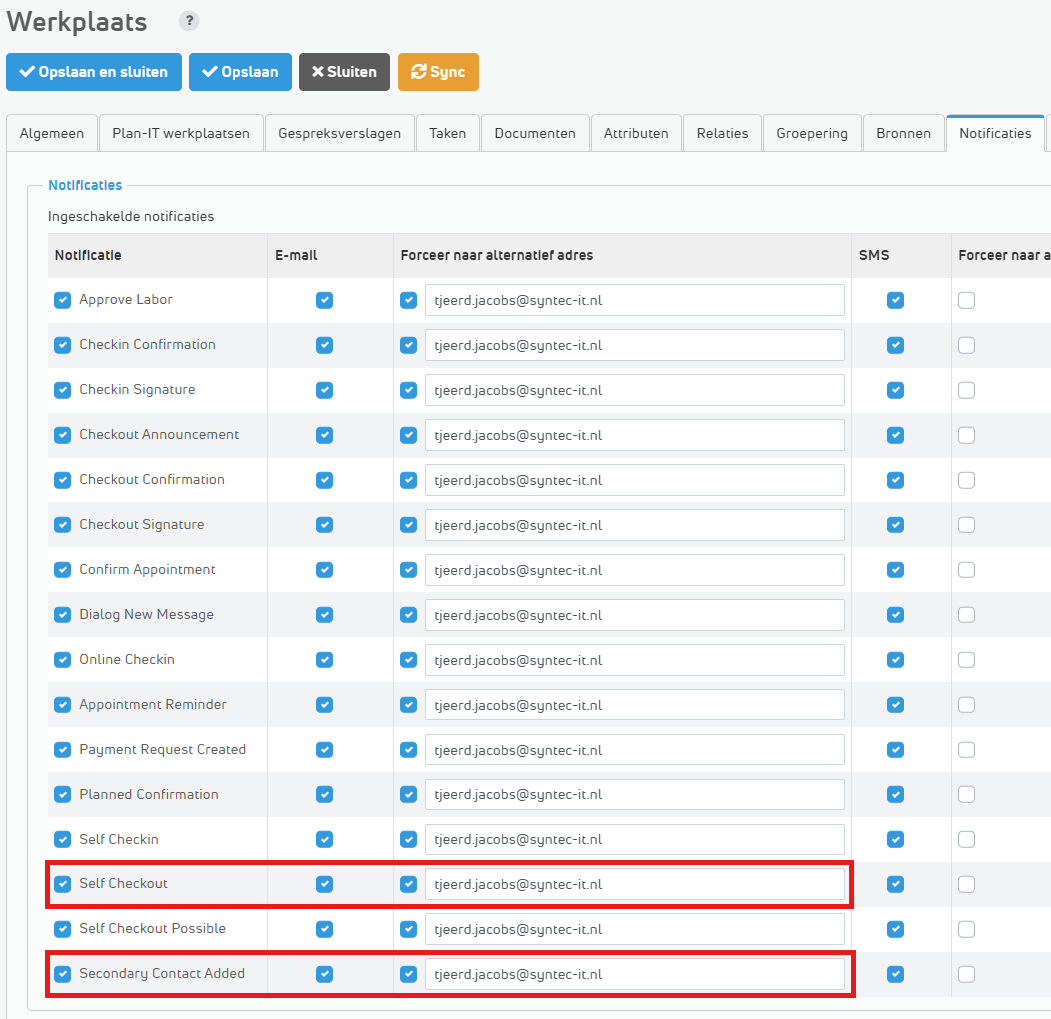 Schakel voor de werkplaats de volgende notificaties in via 'Automotive -> Werkplaats -> Notificaties’: