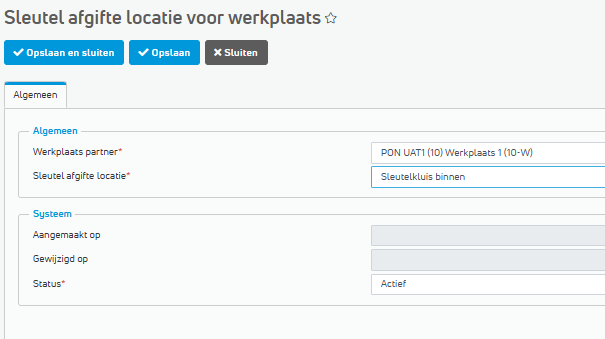 Ga naar 'Sleutel afgifte locaties voor werkplaats'
