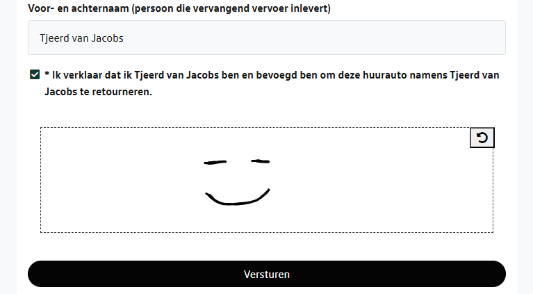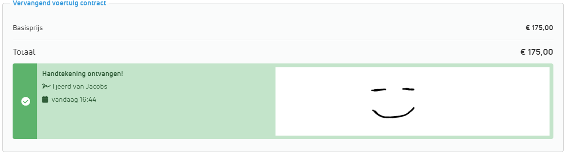 De auto is weer ingenomen! Na het uitchecken ontvangt de klant het volledig ondertekende vervangend vervoer contract in de checkout bevestiging. |